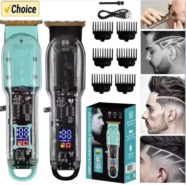 Rechargeable Hair Clippers Professional Hair Clippers Transparent Electric Hair Trimmers For Men Cordless Hair Cut Machine